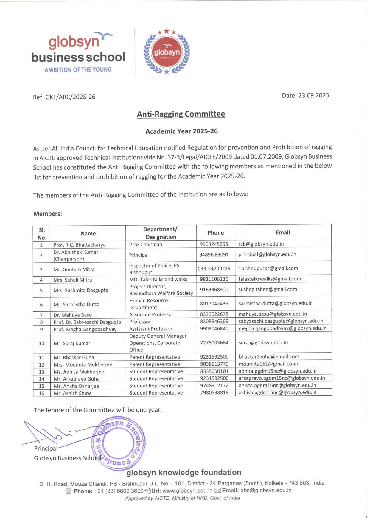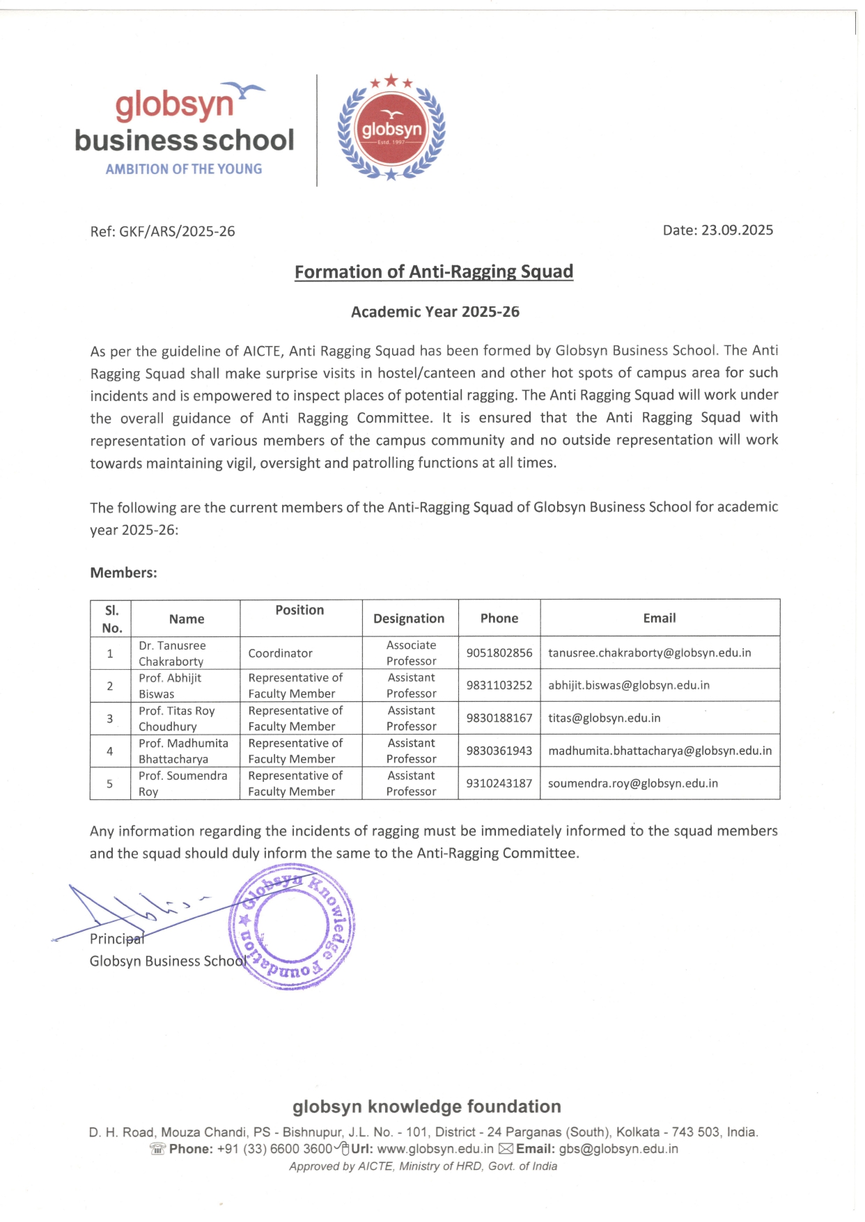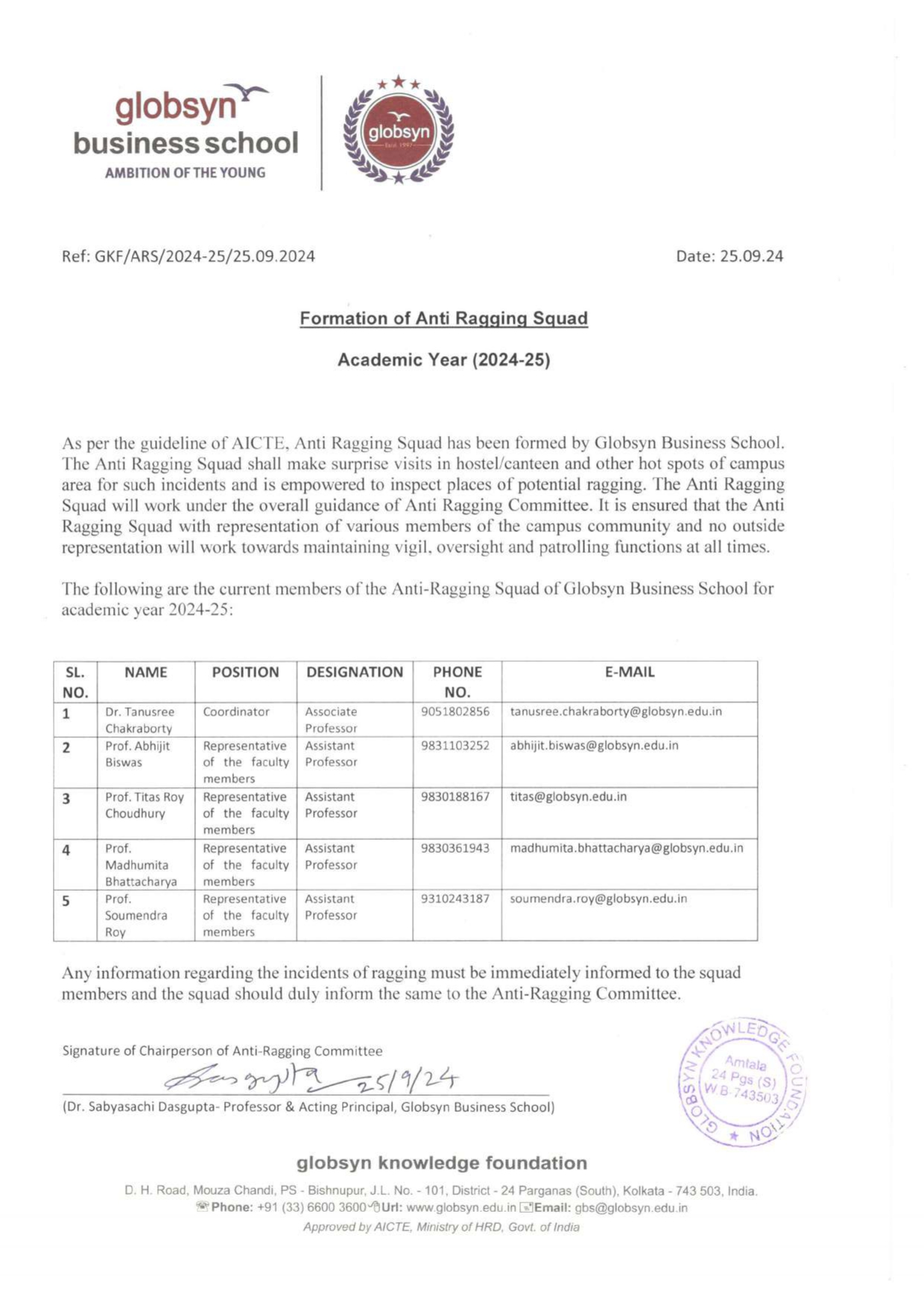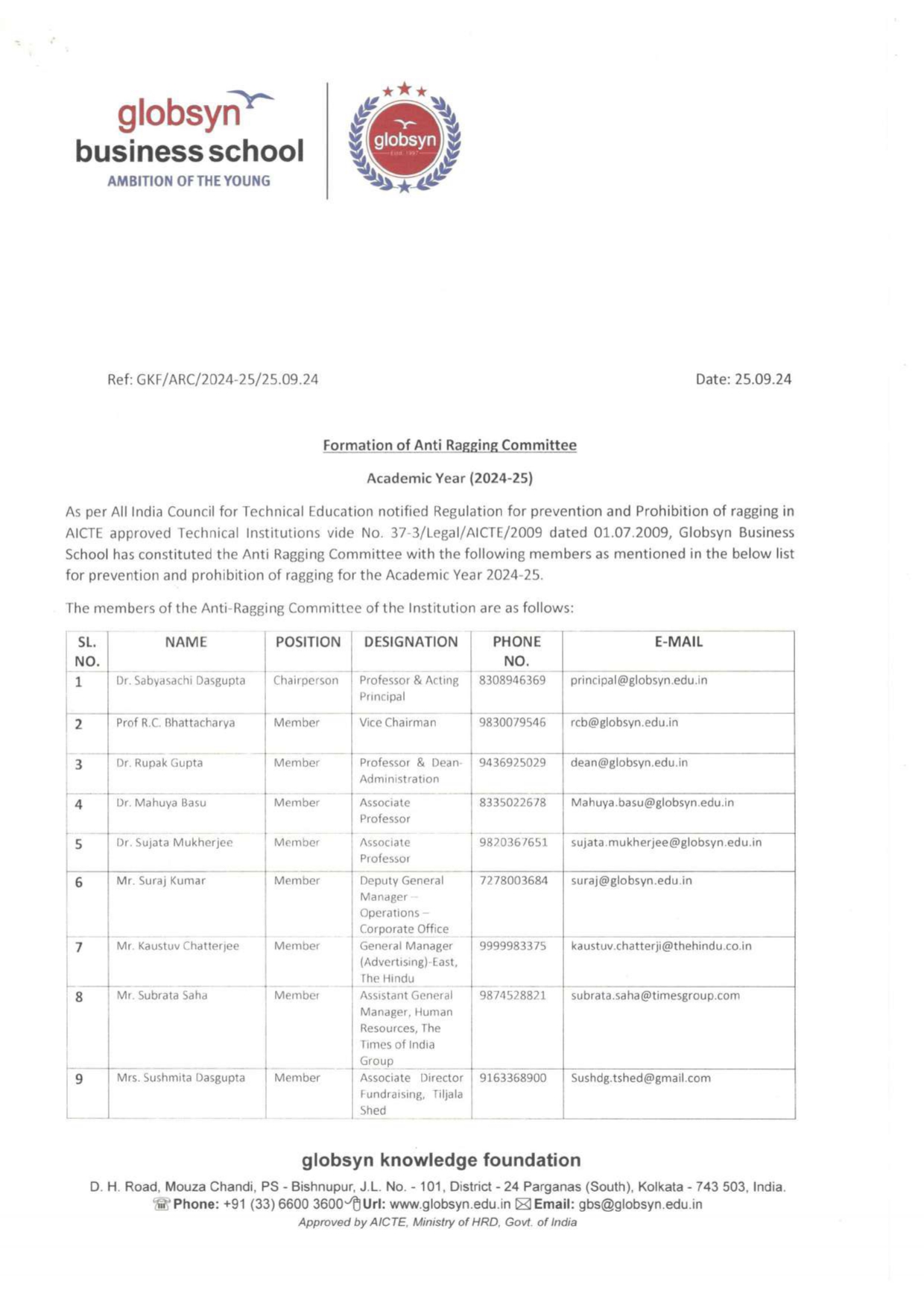 To know more about Globsyn Business School’s Anti-Ragging Committee, visit here.
