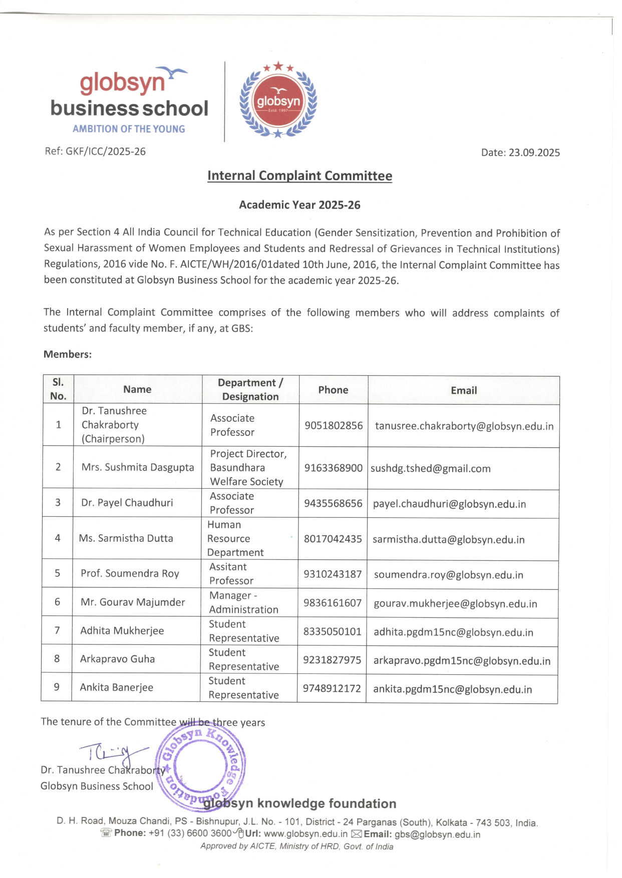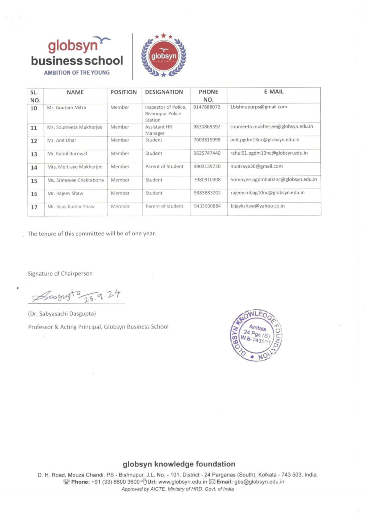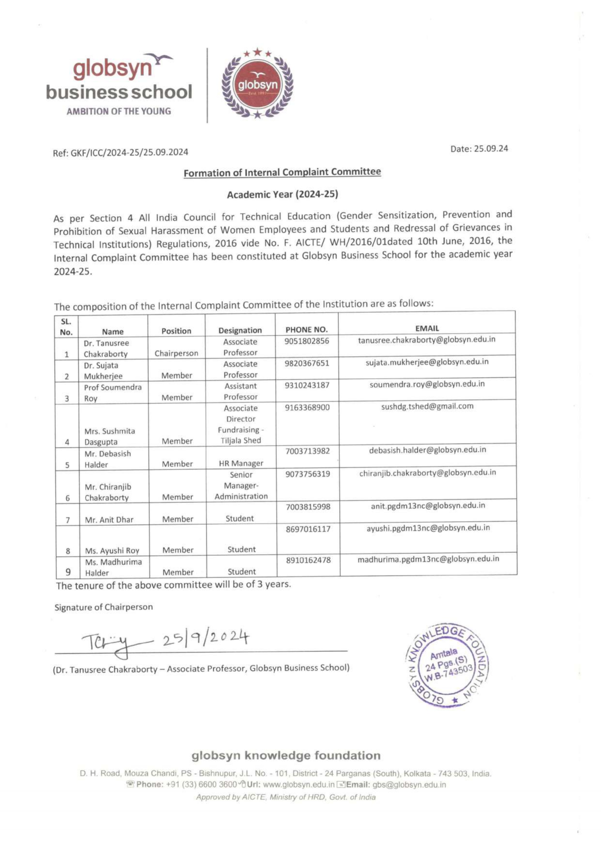 To know more about Globsyn Business School’s Internal Complaint Committee, visit here.