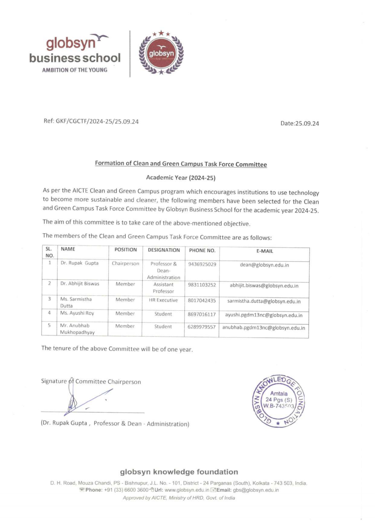 To know more about Globsyn Business School’s Clean and Green Campus Task Force Committee, visit here.