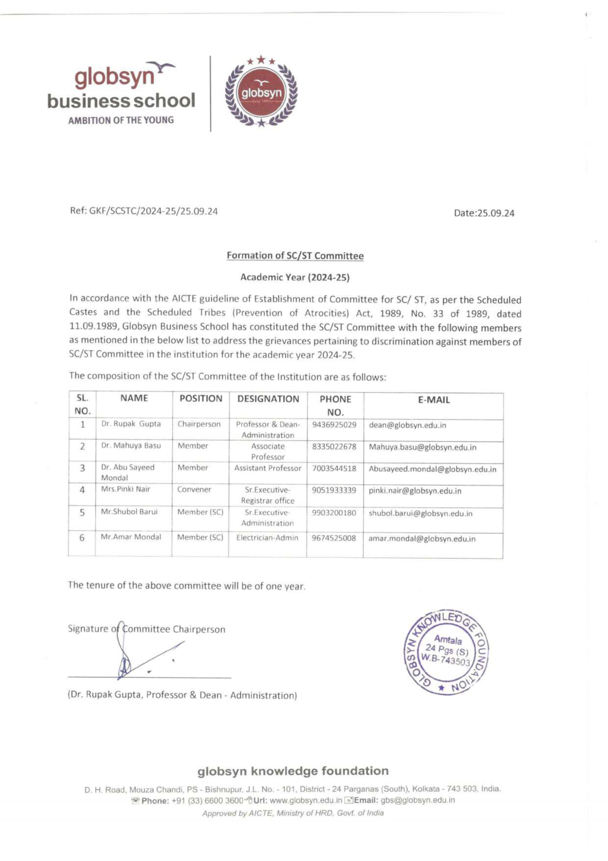 To know more about Globsyn Business School’s SC-ST Committee, visit here.