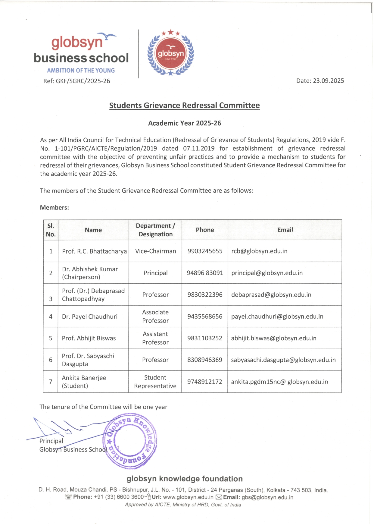 To know more about Globsyn Business School’s Students Grievance Redressal Committee, visit here.