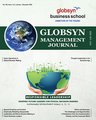 Globsyn Management Journal (Vol. XIX), which is based on the theme ‘Responsible Leadership: Shaping Future Leaders for Ethical Decision Making’ and closely aligned with key United Nations Sustainable Development Goals (SDGs), has reinforced the relevance of responsible leadership in advancing global sustainability agendas. This issue of the Journal, complete with stimulating papers by thought leaders, educators, and practitioners, has highlighted that ethics, sustainability, and profitability are not opposing goals but complementary pillars of responsible leadership.
